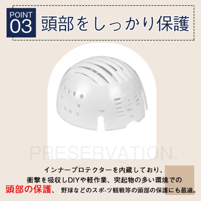 - 風通しの良い素材で、一般的なヘルメットより蒸れにくい