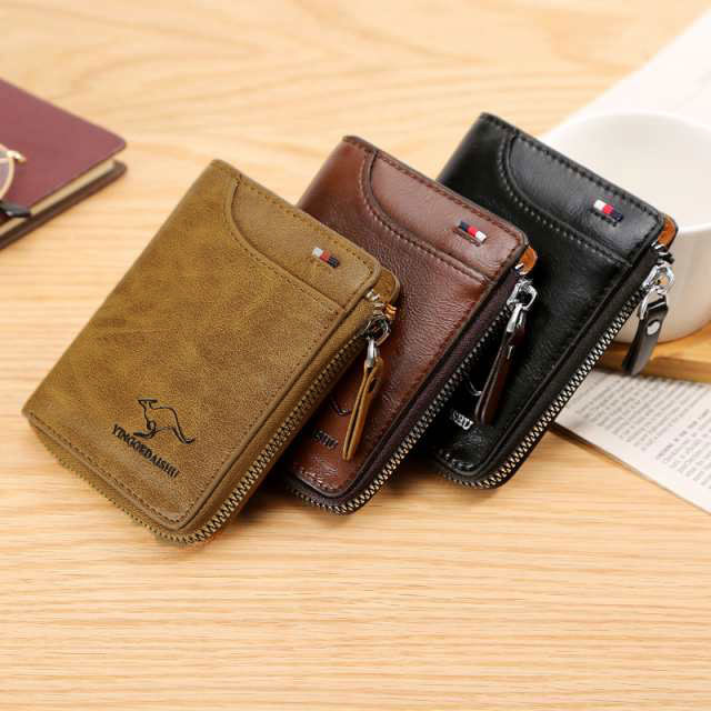 財布 メンズ スキミング防止 ミニ財布 二つ折り 折りたたみ財布 革 レザー L字ファスナー 父の日 プレゼント