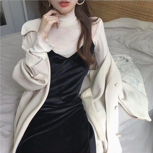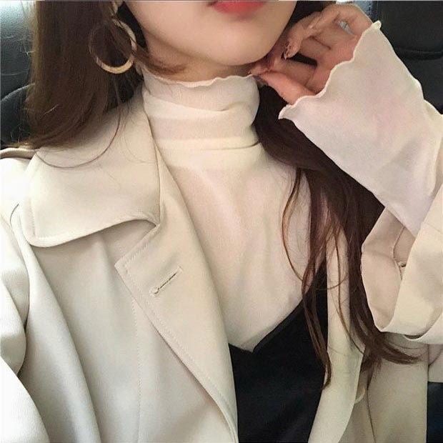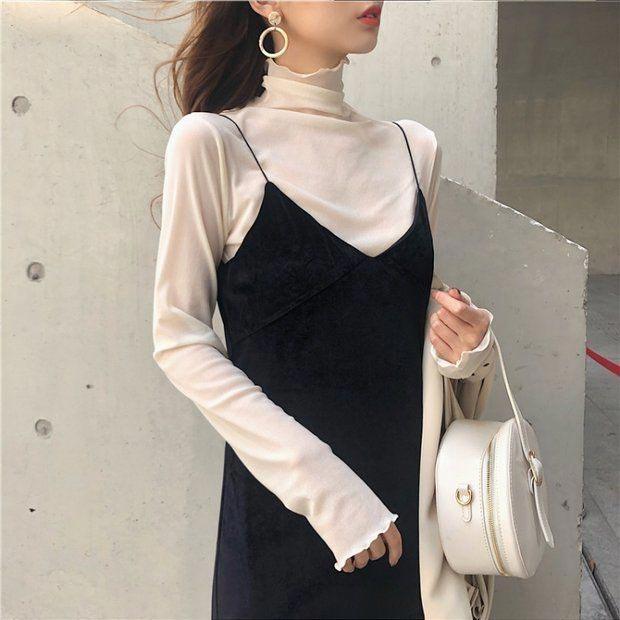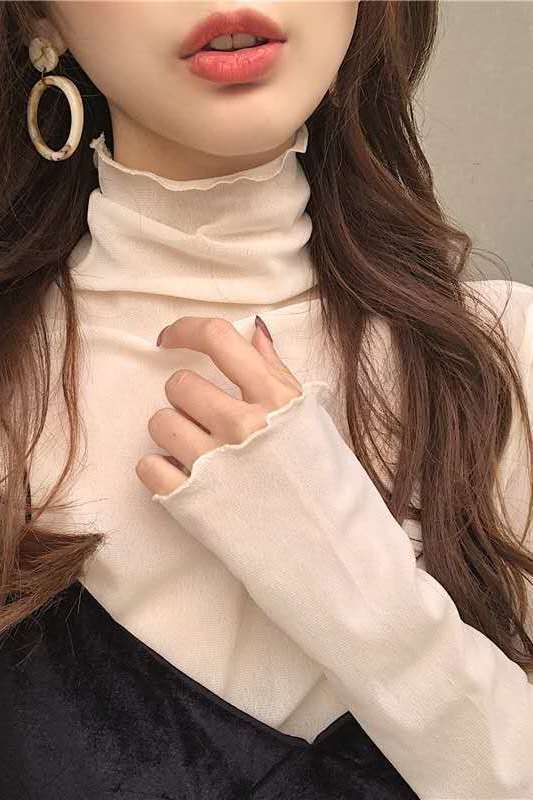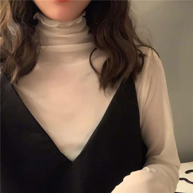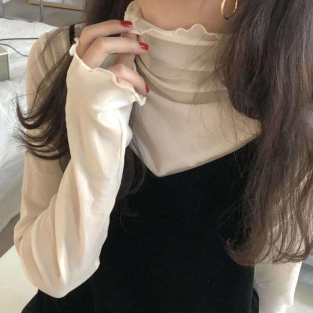 シアーカットソー 春 シャツ シースルー ハイネック トップス インナー シースルートップスカットソー 長袖 クルーネック ハイネック