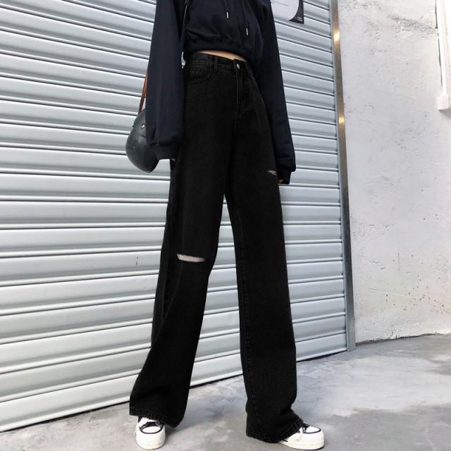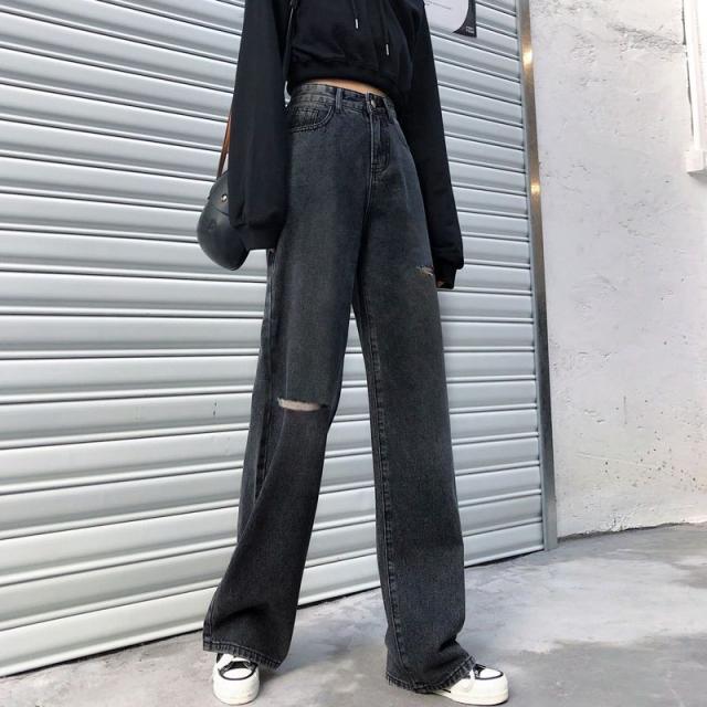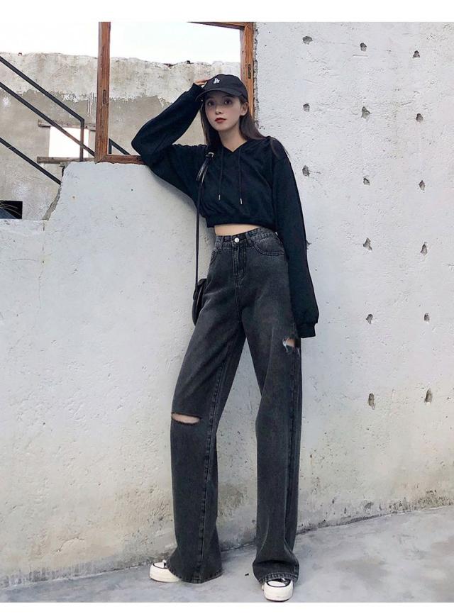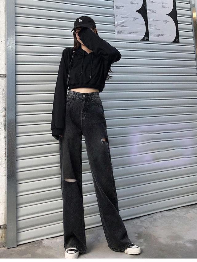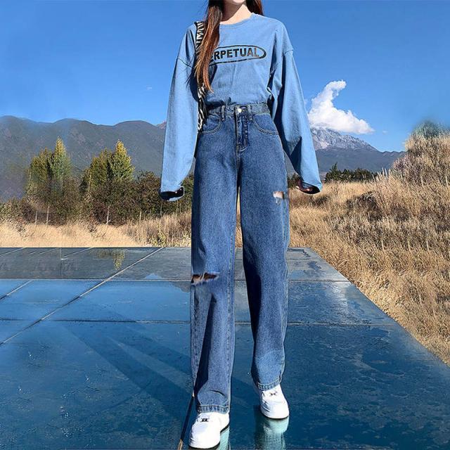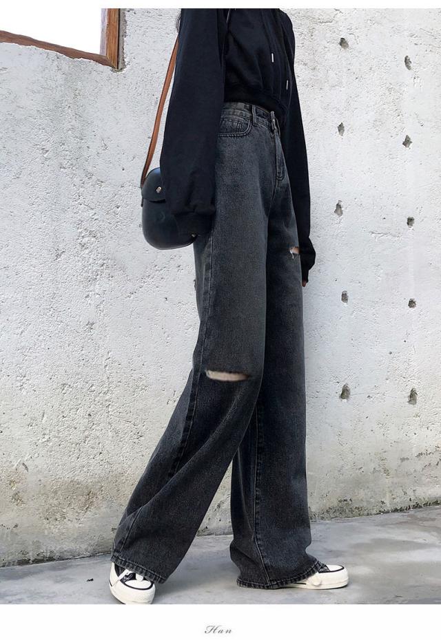 イドスリット ワイドストレートコットンデニムパンツ レディース パンツ デニムパンツ デニム ジーンズ ダメージジーンズ