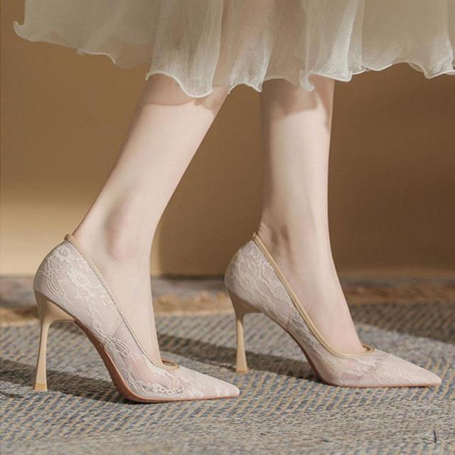 パンプス 靴 結婚式 ポインテッドトゥ レディース 痛くない レース メッシュ 美脚パンプス ハイヒール 9cmヒール お呼ばれ 謝恩会 入学式 卒業式 パーティー