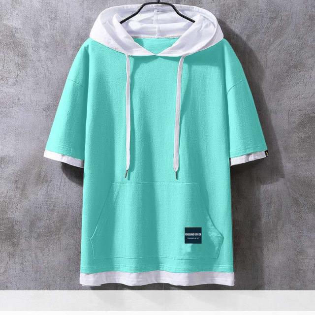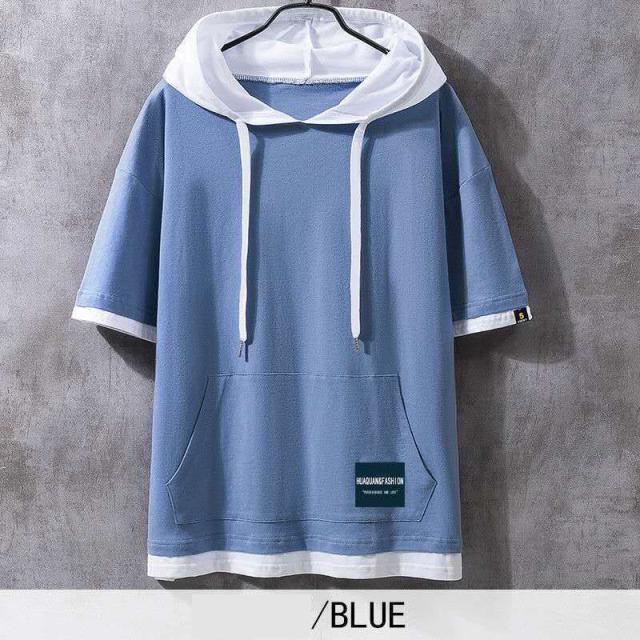 送料無料 tシャツ メンズ 半袖 無地 半袖パーカー 春夏 フード付きtシャツ 半袖 カットソー 春夏 綿 薄手 プルオーバー トップス シンプル 大きサイズ おしゃれ カジュアル