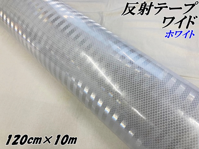 高輝度反射テープワイド 120cm幅×10m ホワイト 反射シール 高反射力テープ トラック安全対策ステッカー バイクリフレクターシール 自転車