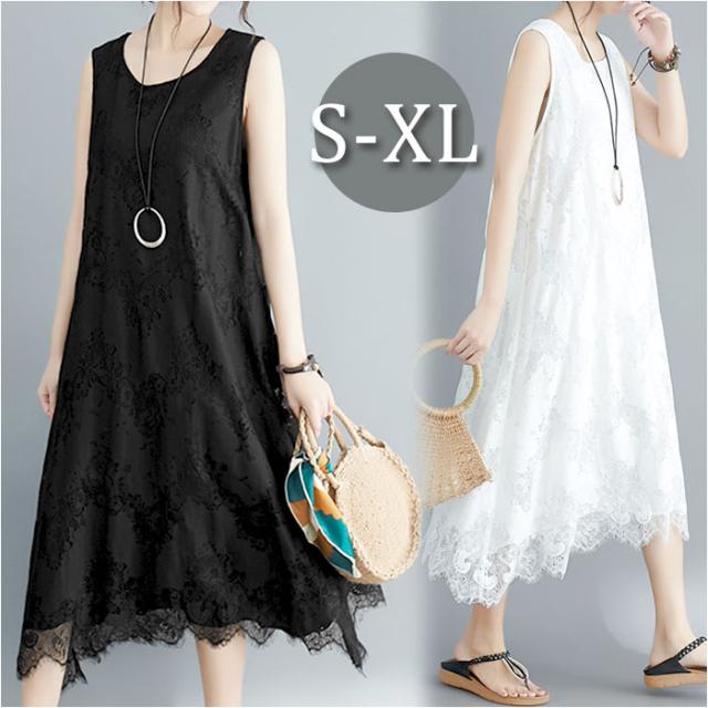マキシワンピース ノースリーブ 通販 ワンピース ワンピ ロング丈 ミモレ丈 Uネック ラウンドネック フレア 無地 シンプル きれいめ 上品 ゆったり カジュアル レース 花柄 Aライン