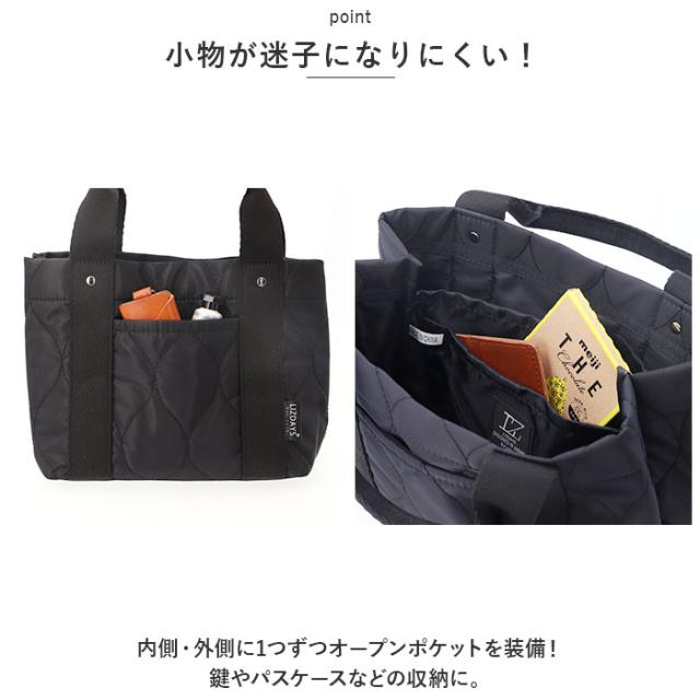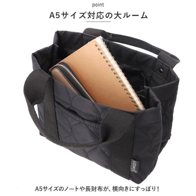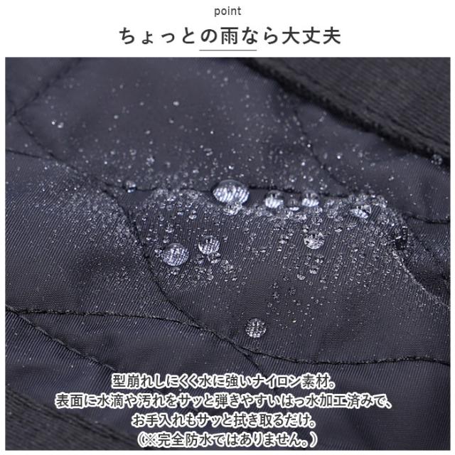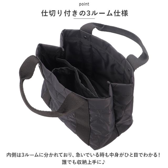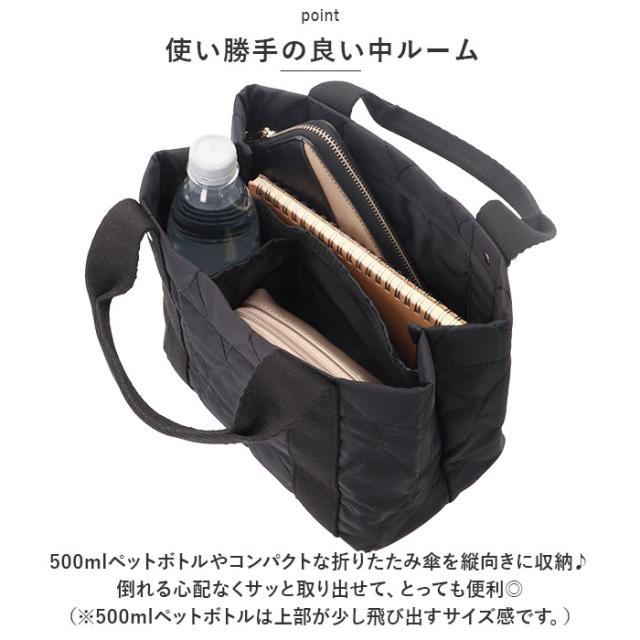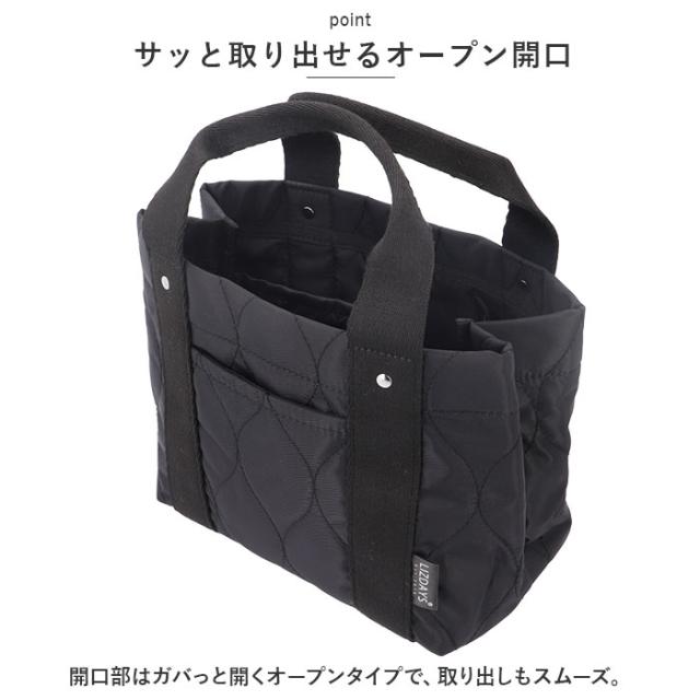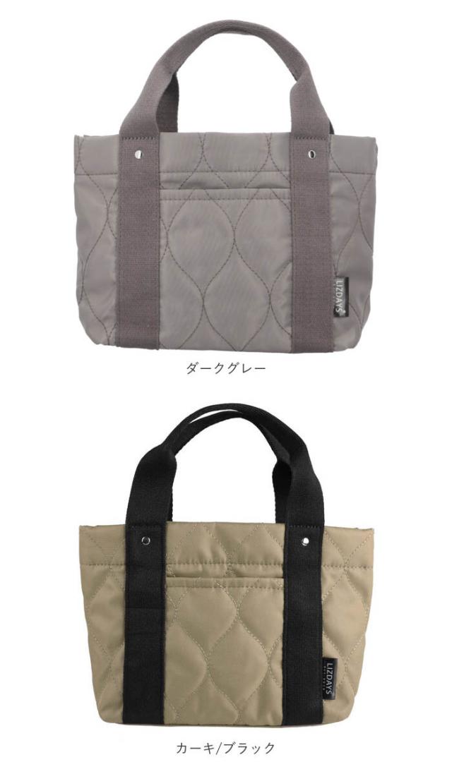| 商品説明 | ・すっきり収納できる♪デイリー使いにぴったりなLIZDAYSの3仕切りミニバッグに、キルティングデザインが仲間入り! 【大人な仕上がり】 ・柔らかで落ち着きのある、キルティングデザインがポイント。キレイめコーデにもマッチ! 【ちょうどいいサイズ感】 ・大きすぎず小さすぎない!お出かけに必要な小物がしっかり収まるミニトート。マチがあり、荷物が入っていない状態でも自立。 【サッと取り出せるオープン開口】 ・開口部はガバっと開くオープンタイプで、取り出しもスムーズ。 【仕切り付きの3ルーム仕様】 ・内側は3ルームに分かれており、急いでいる時も中身がひと目でわかる!誰でも収納上手に♪ 【A5サイズ対応の大ルーム】 ・A5サイズのノートや長財布が、横向きにすっぽり! 【使い勝手の良い中ルーム】 ・ミニポーチやタオル、サニタリーグッズなどをIN☆ ・ペットボトルが収納できる小ルーム】 ・500mlペットボトルやコンパクトな折りたたみ傘を縦向きに収納♪倒れる心配なくサッと取り出せて、とっても便利◎(※500mlペットボトルは上部が少し飛び出すサイズ感です。) 【小物が迷子になりにくい!】 ・内側・外側に1つずつオープンポケットを装備!鍵やパスケースなどの収納に。 【ちょっとの雨なら大丈夫】 ・型崩れしにくく水に強いナイロン素材。表面に水滴や汚れをサッと弾きやすいはっ水加工済みで、お手入れもサッと拭き取るだけ。(※完全防水ではありません。) 【ポケット仕様】 ・内側:オープンポケット×1 ・前面:オープンポケット×1 |