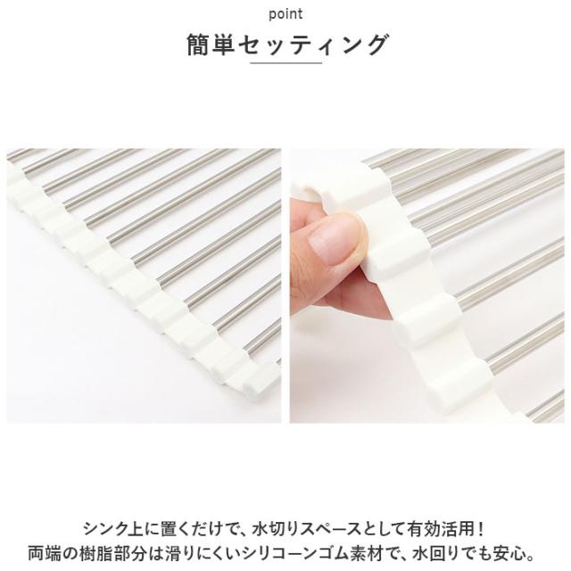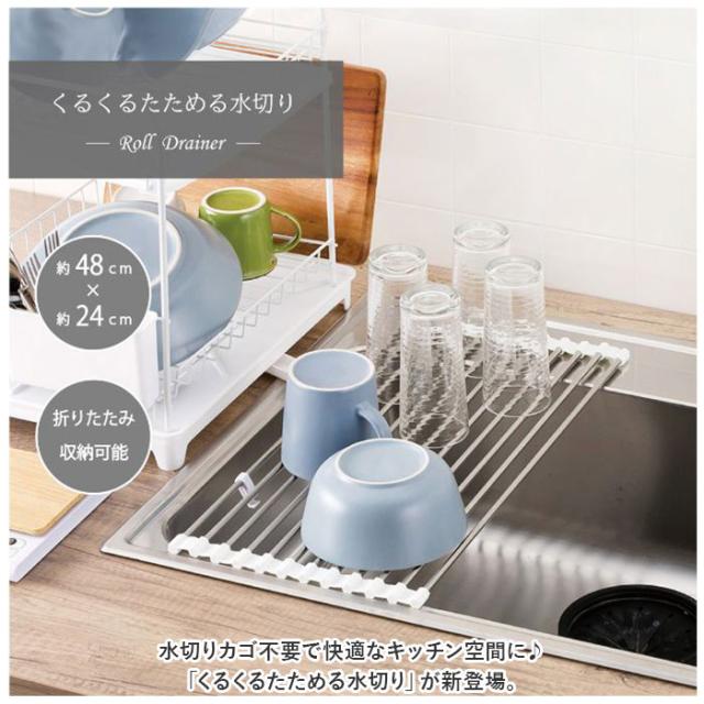 水切りラック 折りたたみ 通販 くるくるたためる 水切り 約 48×行24 水切りマット 水切りかご 水切りカゴ 水きり 折り畳み コンパクト キッチン雑貨 台所用品 シンク シンプル おしゃれ MH-0004WH インテリア
