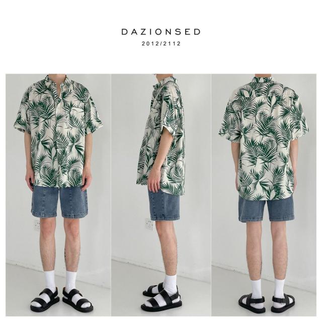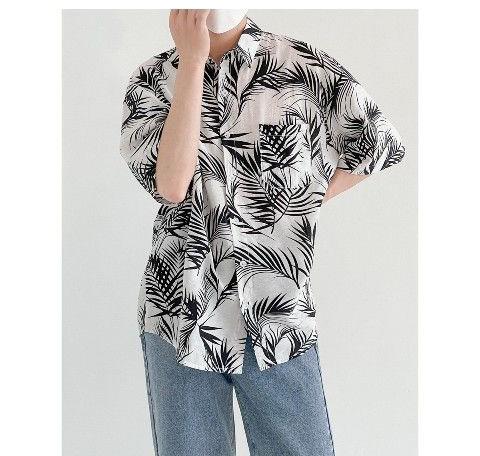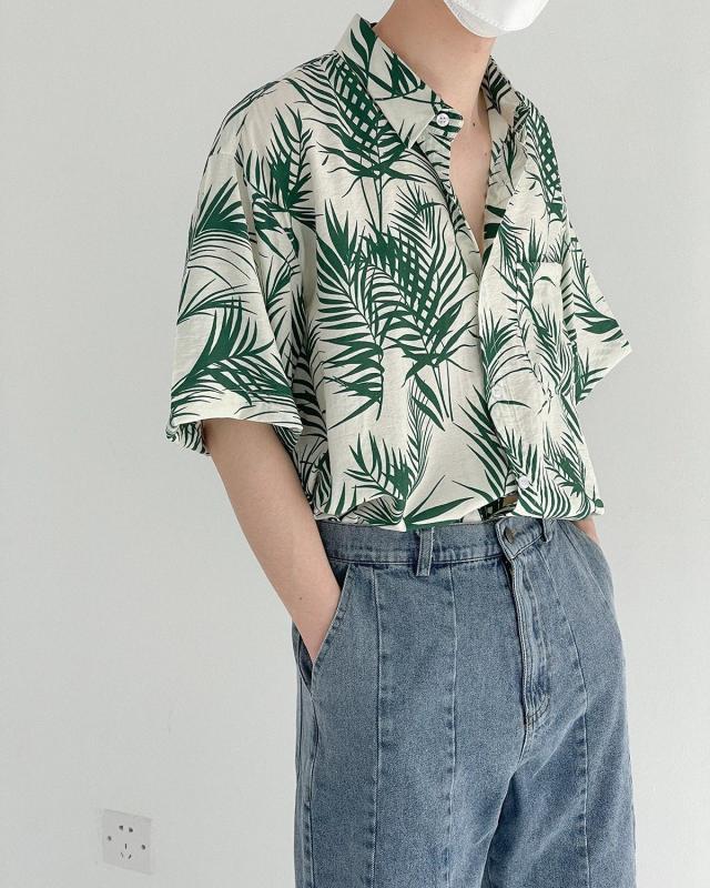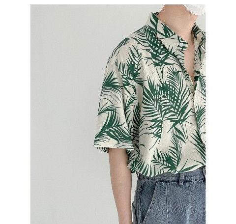 シャツ アロハシャツ ブラウス メンズ 総柄シャツ 花柄シャツ 開襟シャツ 半袖 ボタニカルリーフ柄 夏服 海 旅行 花柄 カジュアル 涼しい