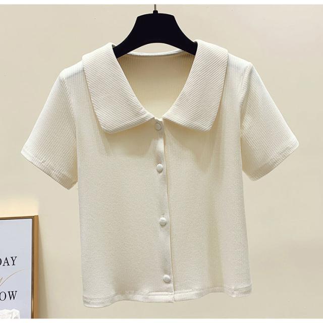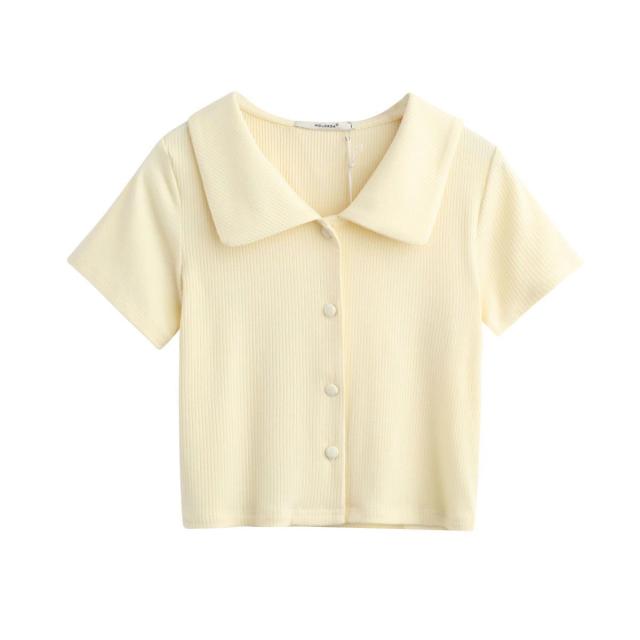 ポロシャツ レディース 半袖Tシャツ クロップドシャツ 半袖ニット クロップド丈 カジュアル お洒落 着やせ 韓国ファッション 送料無料