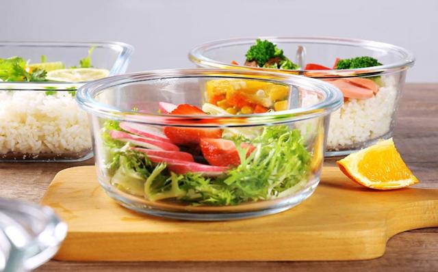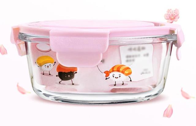 ガラス 保存容器 2点セット 耐熱ガラス製 お弁当箱 丸型 リング付き 漏れ防止 保存容器 電子レンジ対応 食器洗い機 オーブン冷凍可