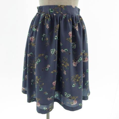 【中古】ビス ViS スカート フレア ミディ丈 ウエストゴム 花柄 ブルー系 ブルーグレー マルチカラー F レディース