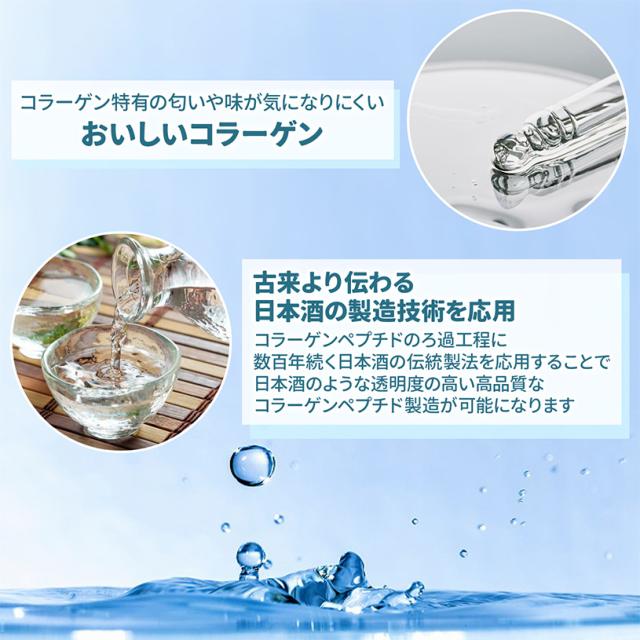 溶けやすく、味とにおいが低く抑えられて、たんぱく質たっぷりで糖質・脂肪分ゼロ。毎日の生活にコラーゲンを。