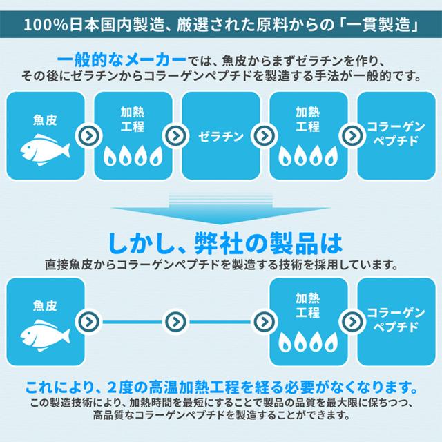 魚皮を使用し、国内にて製造、脂肪・糖質分などを取り除いた低分子コラーゲン粉末。
