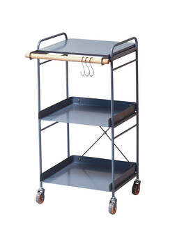 スチール×天然木の取手がポイントのワゴン。