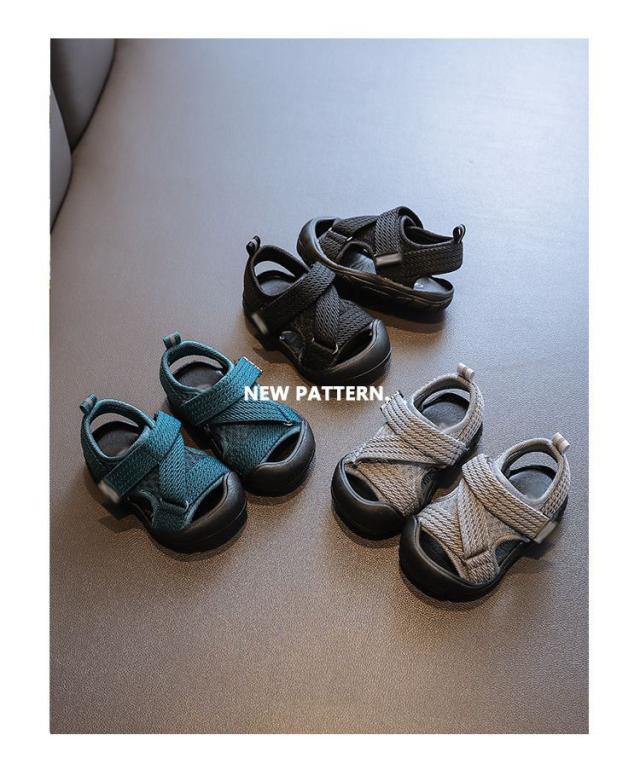 キッズ ベビー サンダル メッシュ スポーツサンダル つま先ガード 靴 マジックテープ 赤ちゃん 子供靴 水陸両用 ベルクロ ベビーサンダル 女の子 男の子 ブラック 水遊び 保育園 幼稚園 春 夏 12.5-19.5cm 1歳児 1歳児半 送料無料