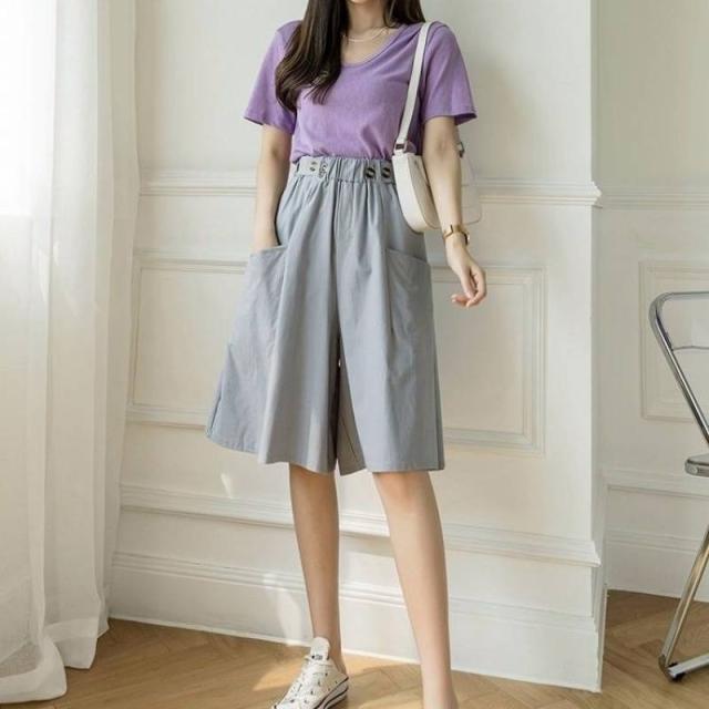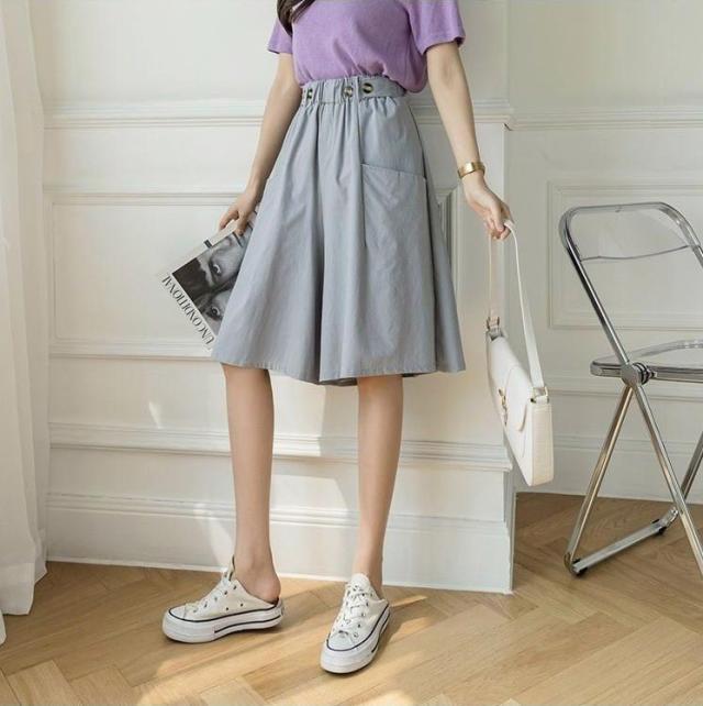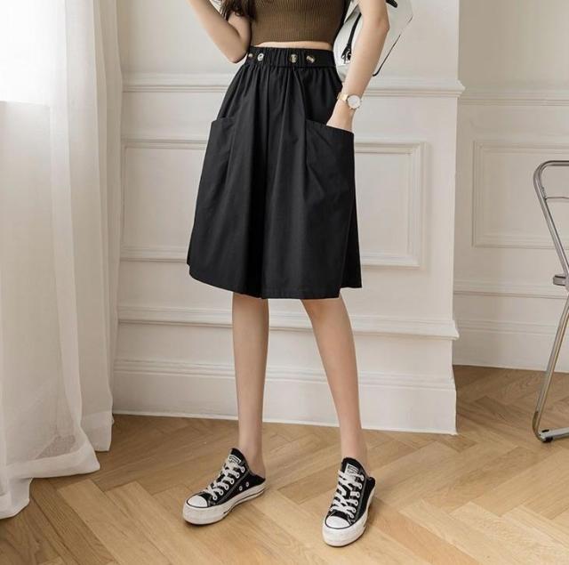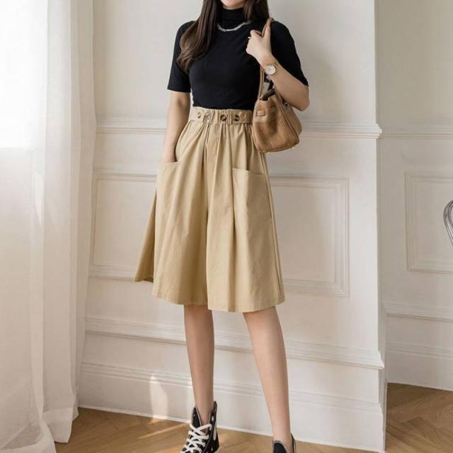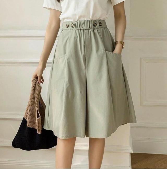 キュロットパンツ ショートパンツ レディース Aライン スカーチョ ハーフパンツ ウェストゴム ポケット付き