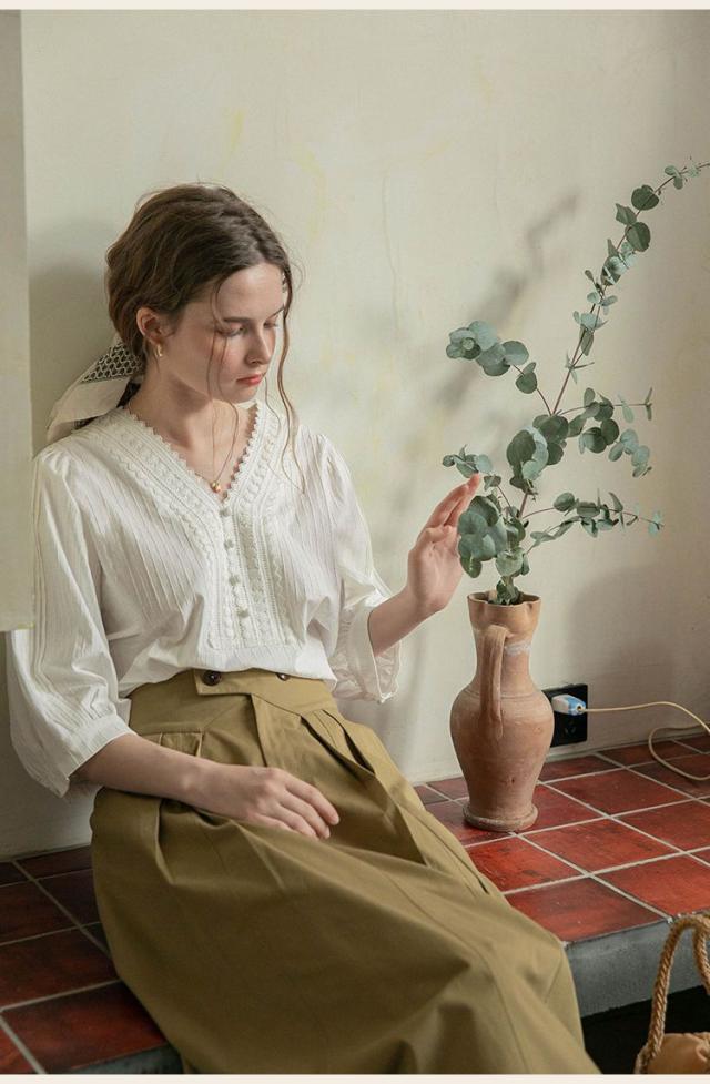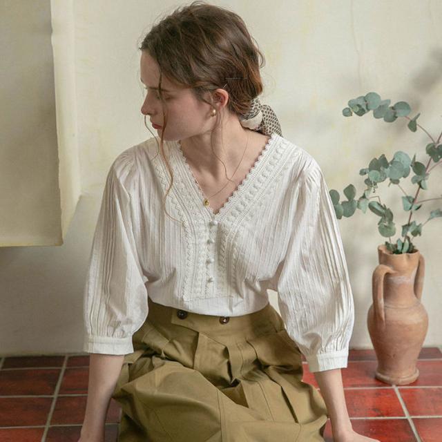 シャツ ブラウス ブラウス七分袖 7分袖 レースピンタック vネック レディース 無地 着痩せ おしゃれ 通勤 高級感