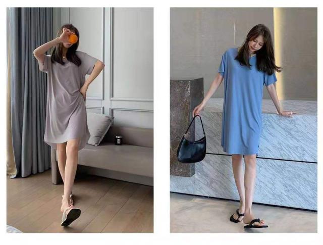 送料無料 涼感 ワンピース 伸縮性がある ウエストゴム ワンマイルウェア 部屋着 ワンピ かわいい