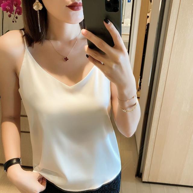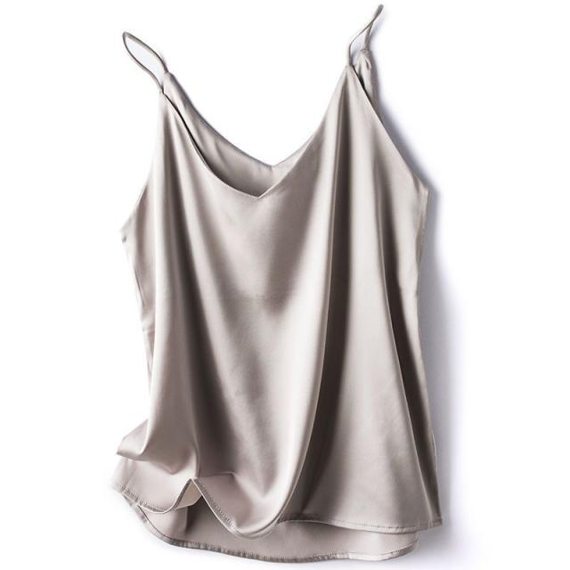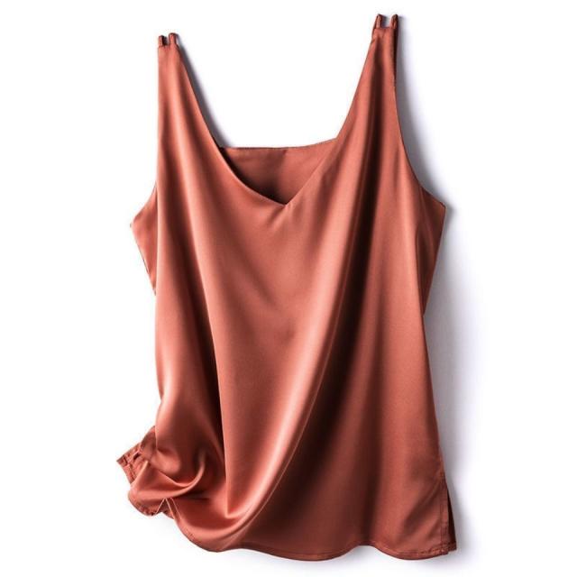 送料無料 アイスシルク キャミソール サテン タンクトップ レディース 大きいサイズ インナー 脇汗 ゆる トップス 袖なし ブラウス ルームウェア 重ね着 肌着 部屋着