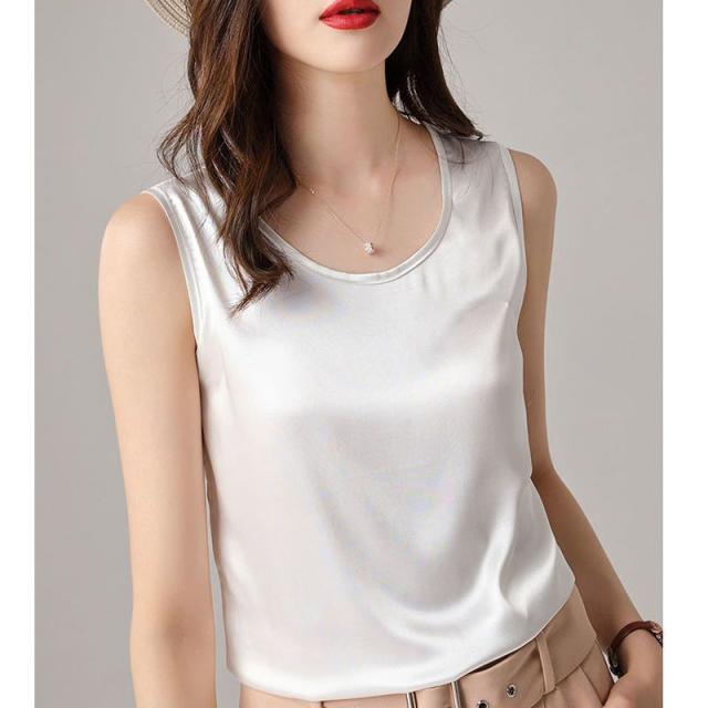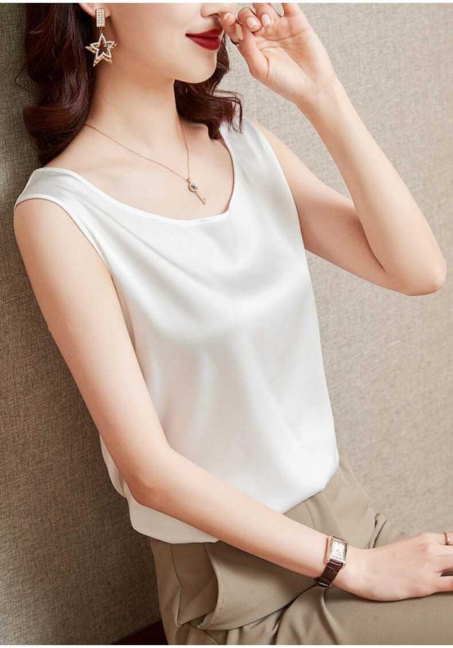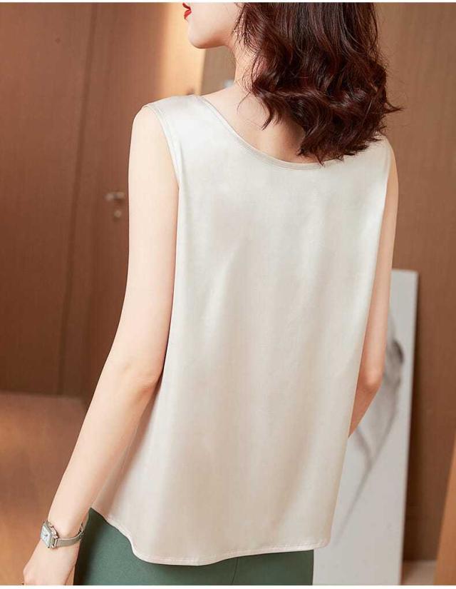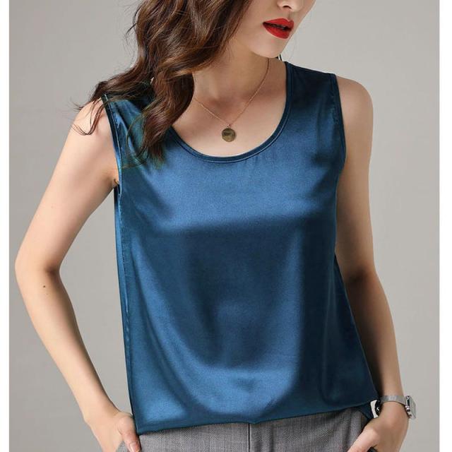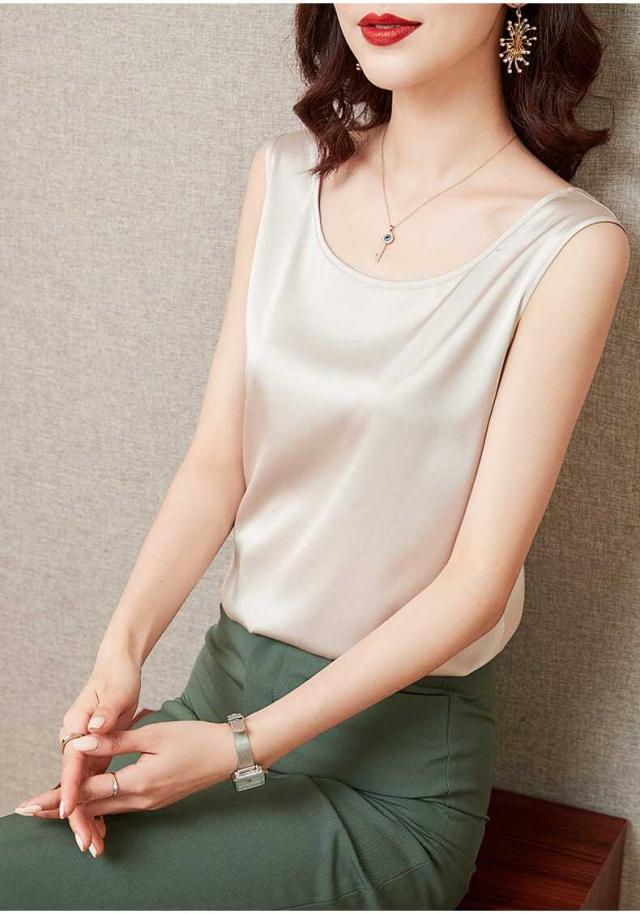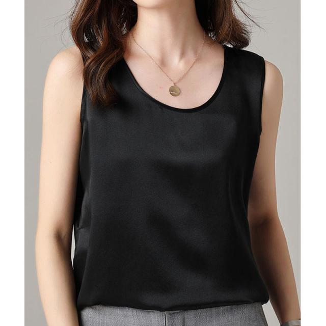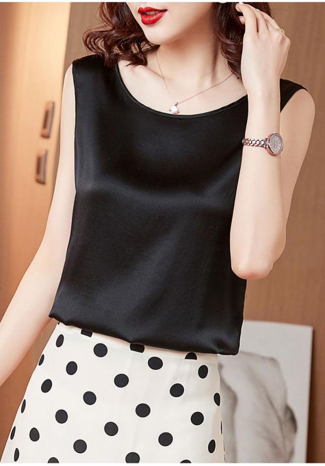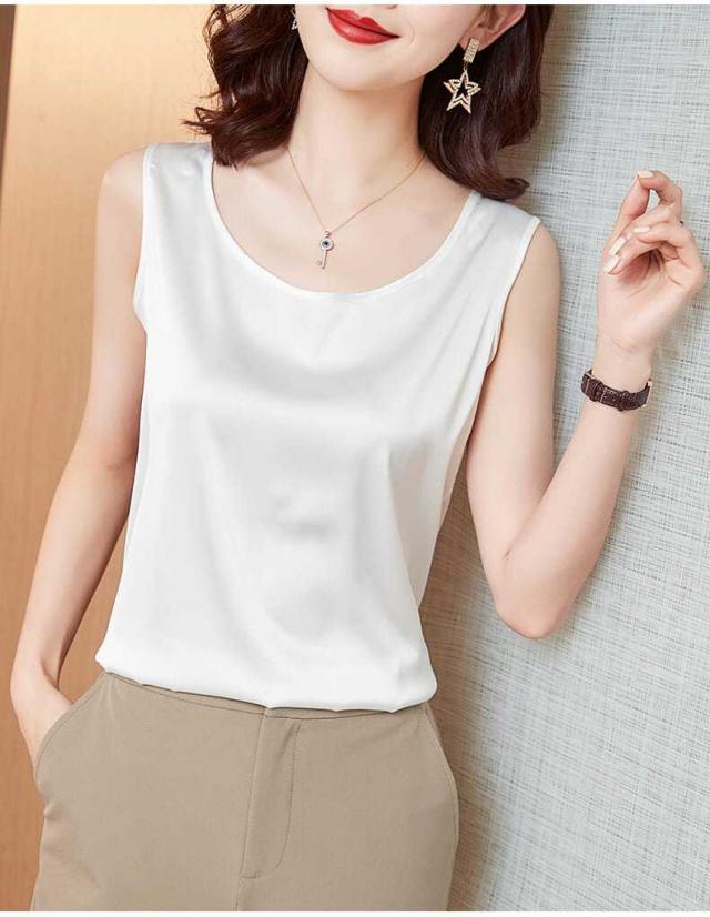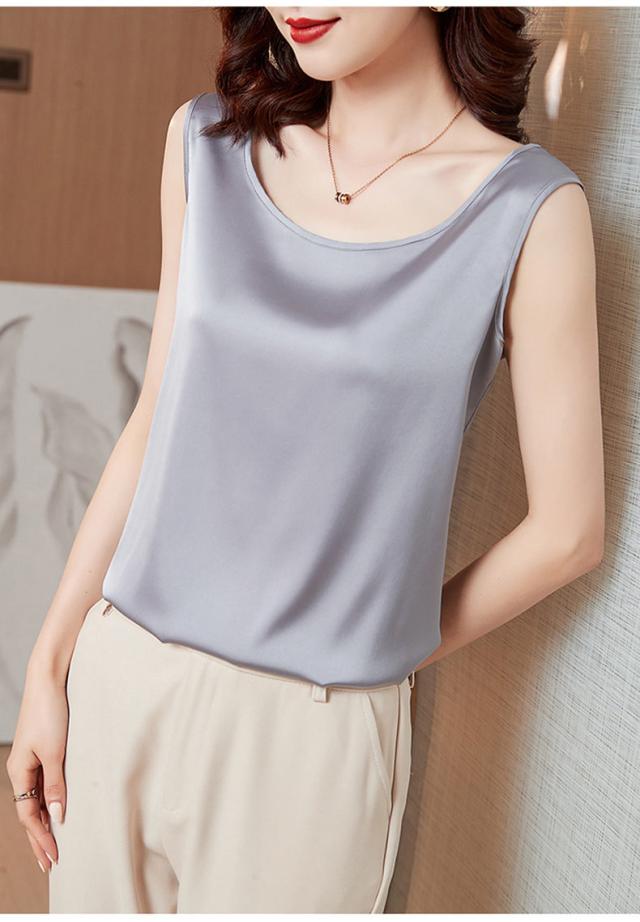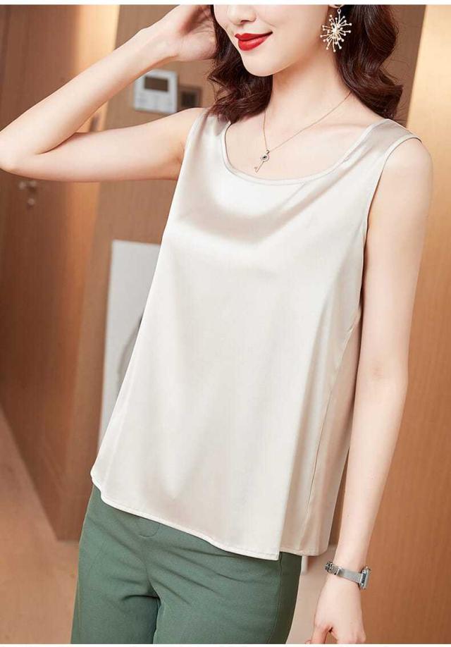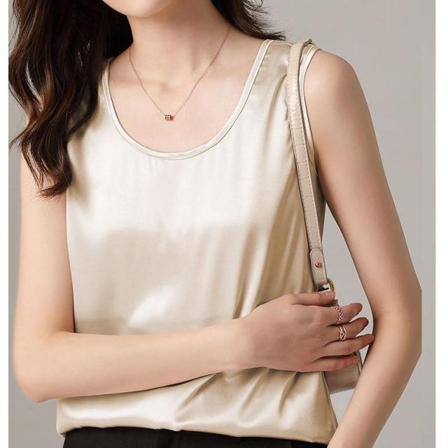 サテン調 タンクトップ レディース インナートップス Uネック ブラウス ノースリーブ 薄手 夏 シンプル