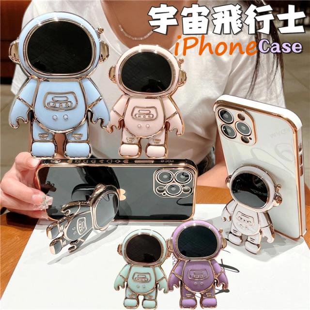 iphone8 iphone7 plus ケース 韓国 iPhone ケース 宇宙飛行士 縦置き 横置き スタンド 軽量 薄型 メッキ 加工 アイフォン 14 12 13mini iPhone11 13 promax XR Xs 7 8 se 第3世代 se2 スマホケース iphone7 カバー おしゃれ かわいい 大人 女子 宇宙飛行士 スペースマン