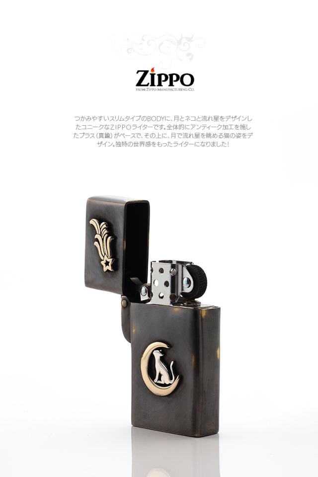Zippo ライター ジッポー ネコ 三日月の上で流れ星を見上げる猫 真鍮 メンズ so0541
