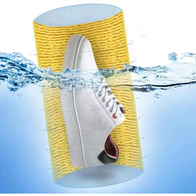 靴は洗濯ネット中にいれて、靴が擦れず、靴の型崩れや損傷を防ぎ、靴の変色や汚れの移動を防ぎます。