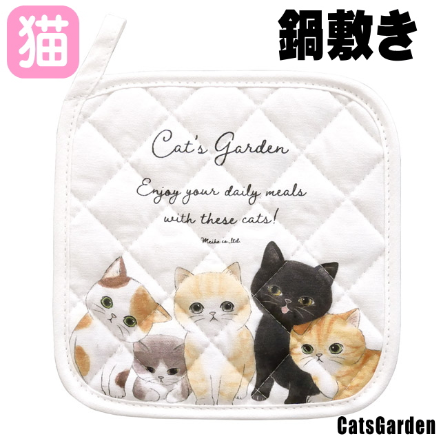 鍋敷き 猫 鍋しき 布製 キャット キッチン用品 ループ付き 便利 ねこ ネコ CAT 猫柄 猫雑貨 猫グッズ かわいい おしゃれ
