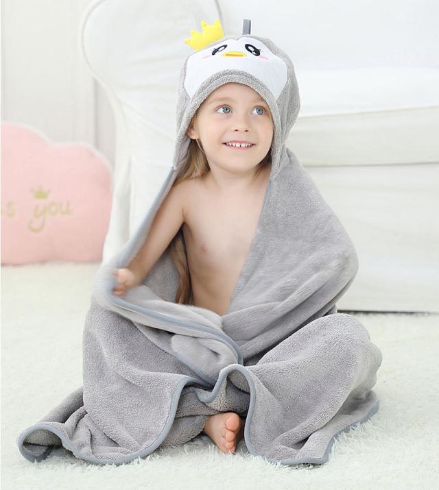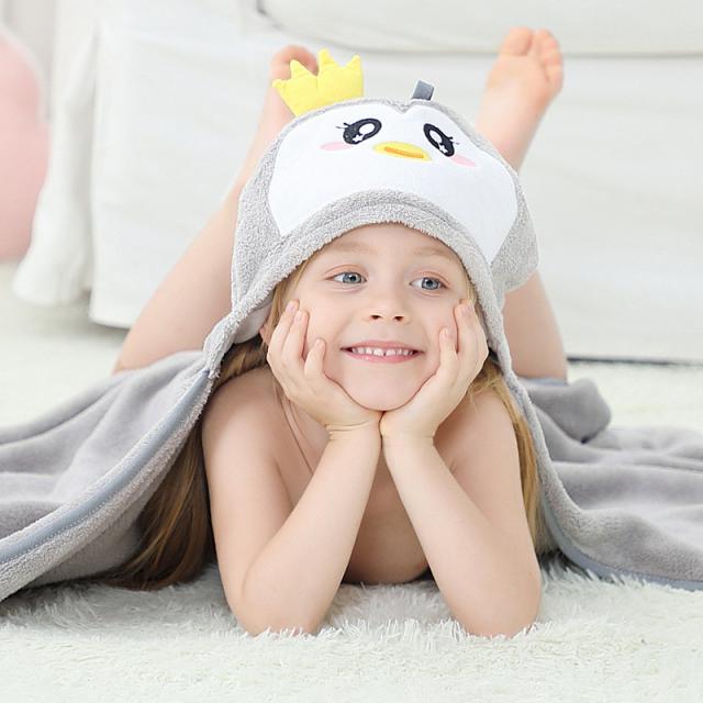 バスローブ ベビータオル 子ども用 バスタオル キッズ ポンチョ フード付き 子供 キッズ お風呂 出産祝い贈り物 ペンギン 柔らか 湯上り 吸水 軽量