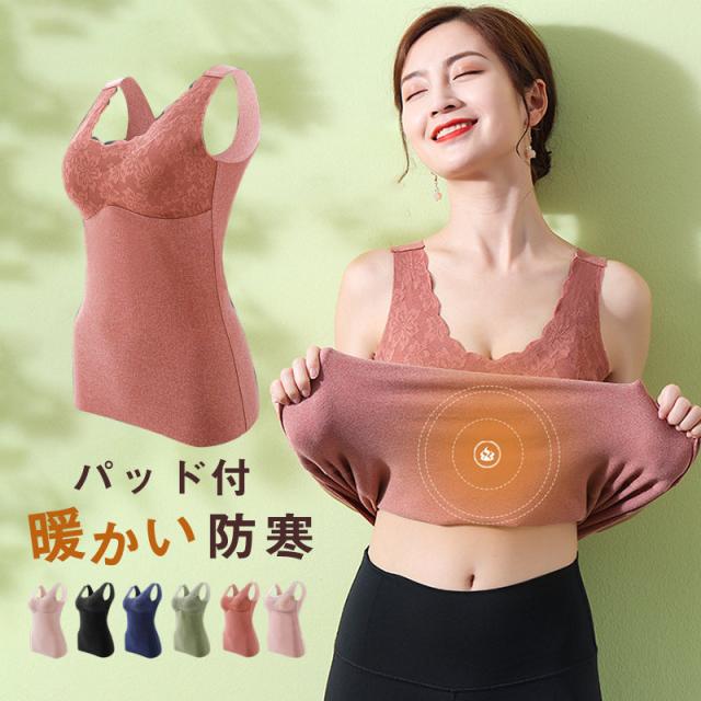 裏起毛タンクト レディース キャミソール タンクトップ パッド付 トップス 発熱インナー 防寒インナー 肌着 裏ボア 極暖発熱 ノースリーブ 送料無料