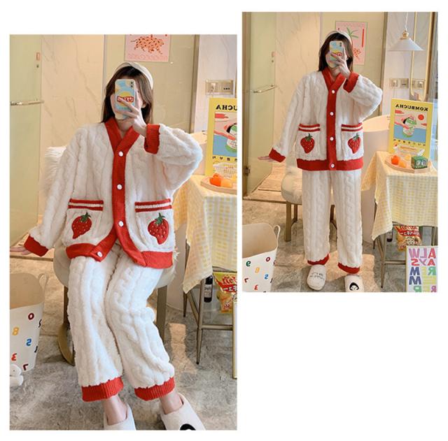 パジャマ ルームウェア レディース 秋冬 モコモコ 長袖 丸首 フランネルルームウェア 寝間着 暖かい 上下セット 部屋着 ゆったり 韓国風 送料無料