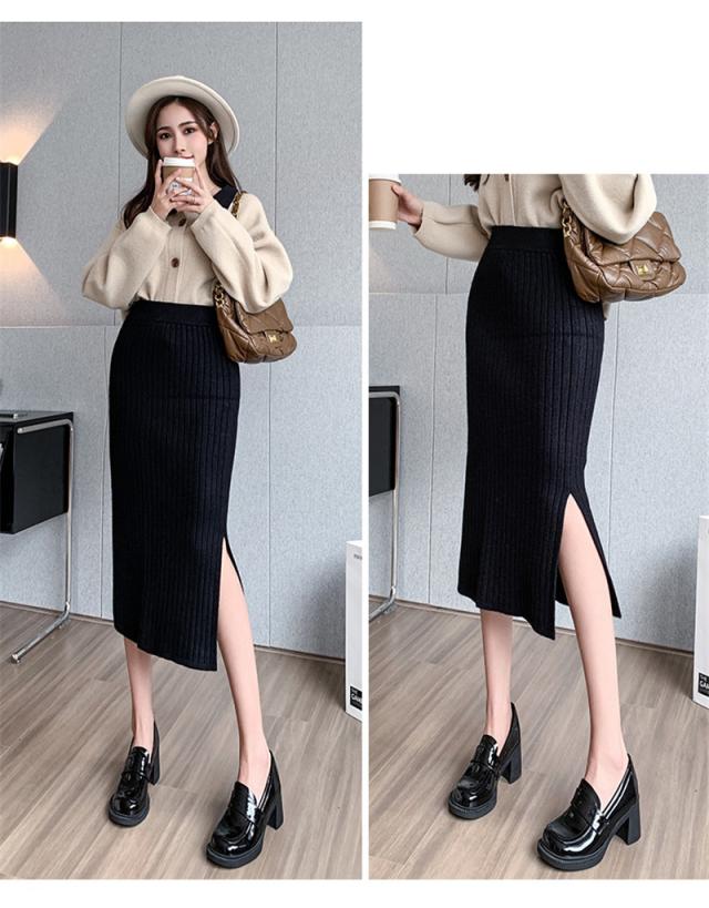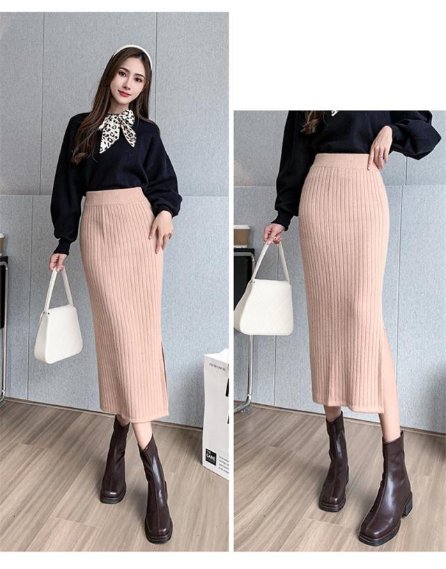 ニットスカート スリットスカート スリット入り タイト レディース ボトムス あたたかい ストレッチ ミモレ丈 ロング ストレート Aライン 送料無料