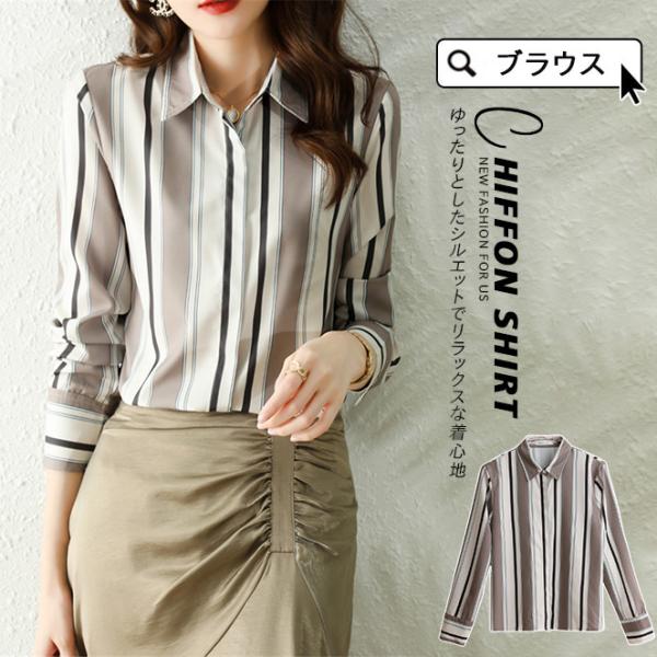 ブラウス レディース トップス 長袖 シャツブラウス ポロネック シフォン 開襟 フェミニン オフィス 大人セレブ 韓国 インナートップス ボタン付き