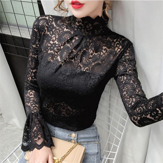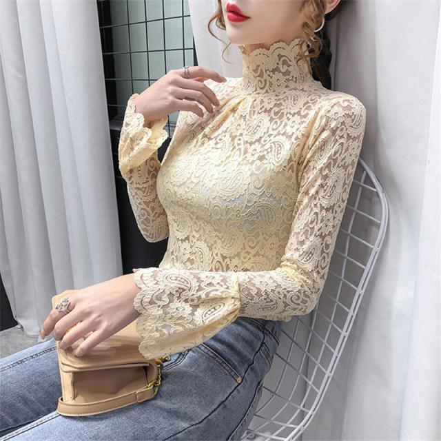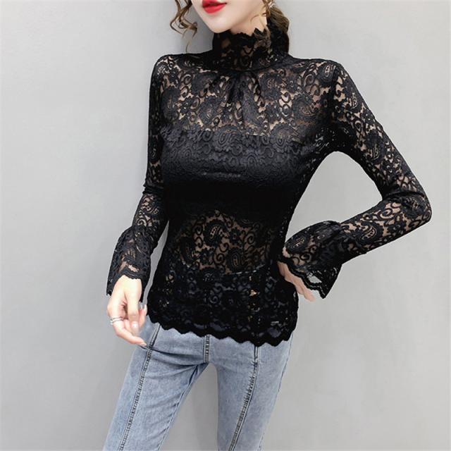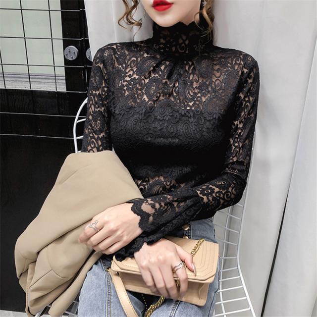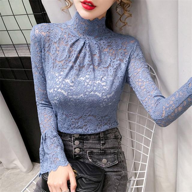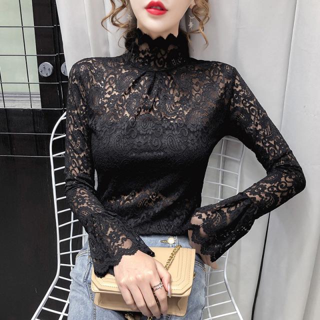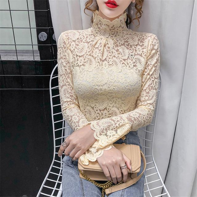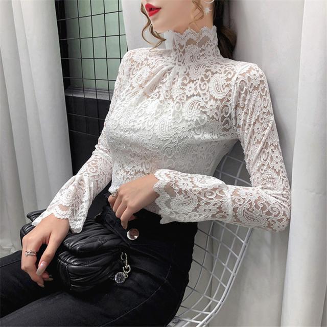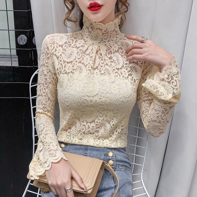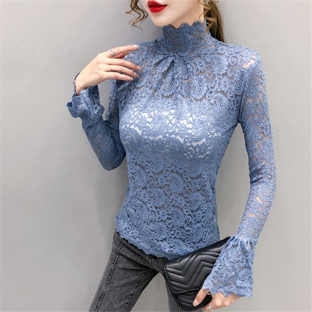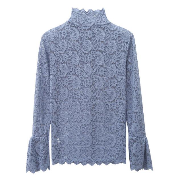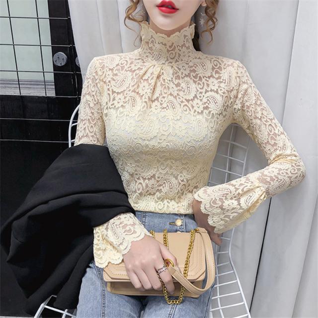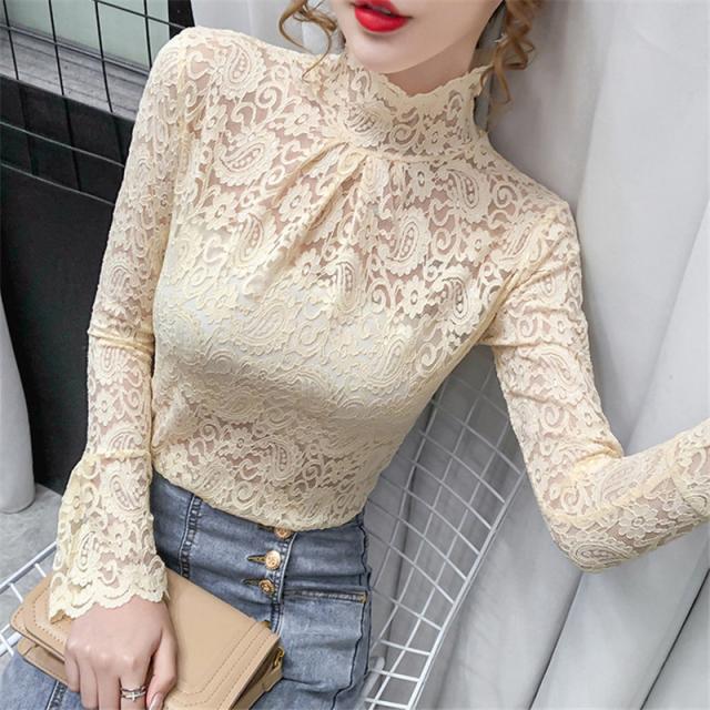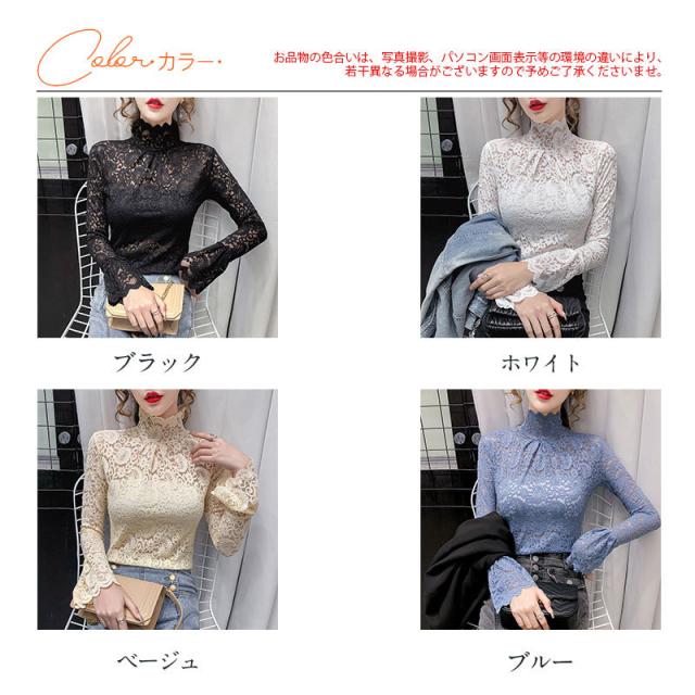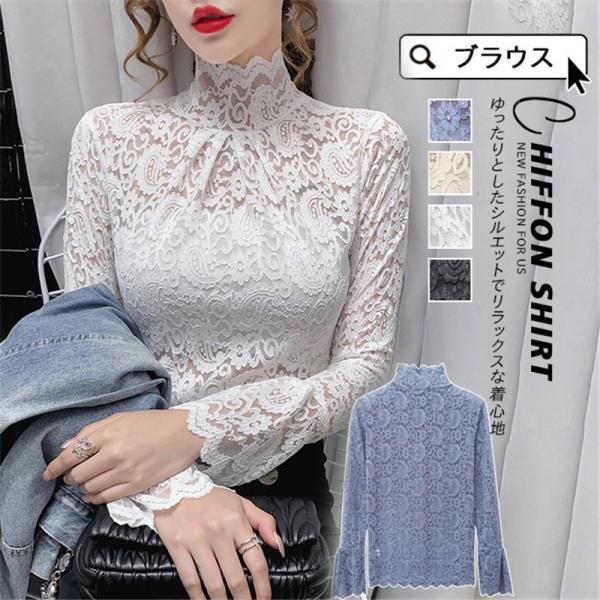 ブラウス レディース トップス 長袖 シャツブラウス レース ハイネック フェミニン オフィス きれいめ チュール シースルー 大人セレブ 韓国風