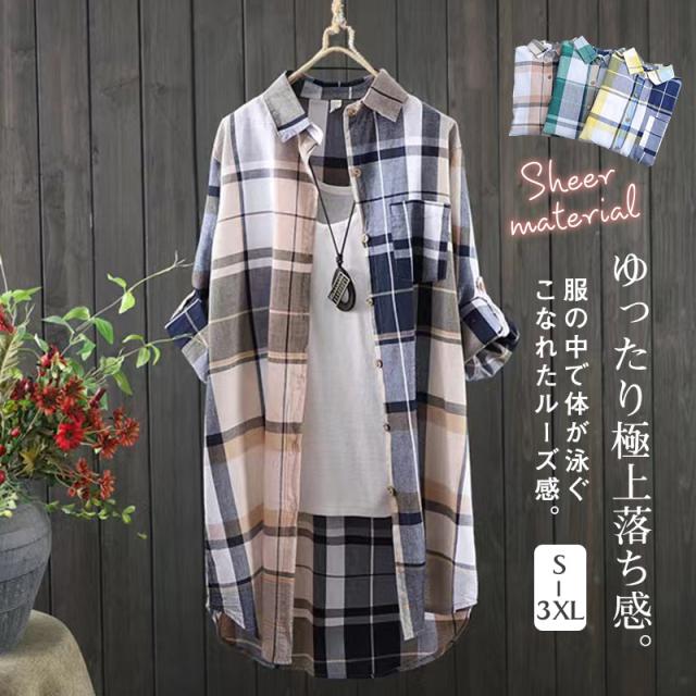 ロングシャツ シャツ レディース ロング 長袖 ブラウス チェック シャツワンピース 春夏 春服 夏服 きれいめ チュニック トップス 羽織 送料無料