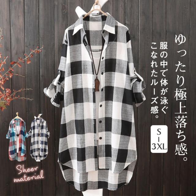 チェックシャツ シャツ ロングシャツ 羽織 ロングブラウス レディース 長袖 チェック柄 トップス カジュアル 春秋 着痩せ コーデ キレイ 送料無料