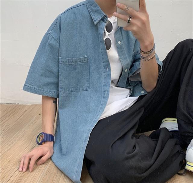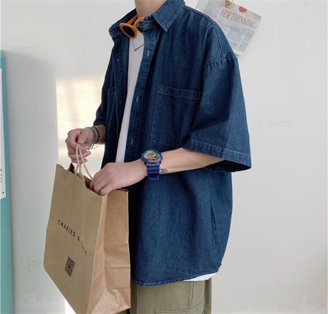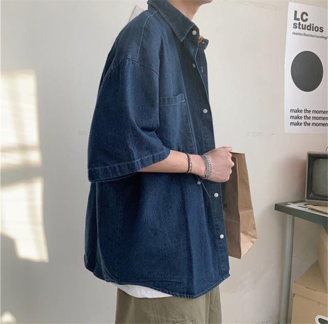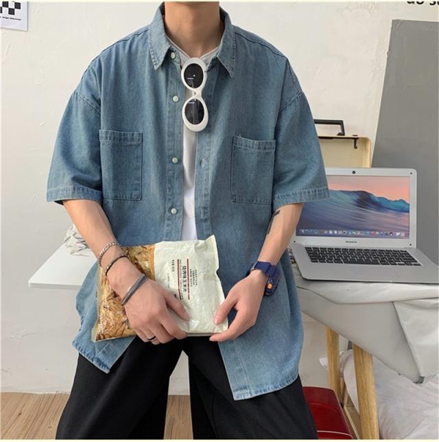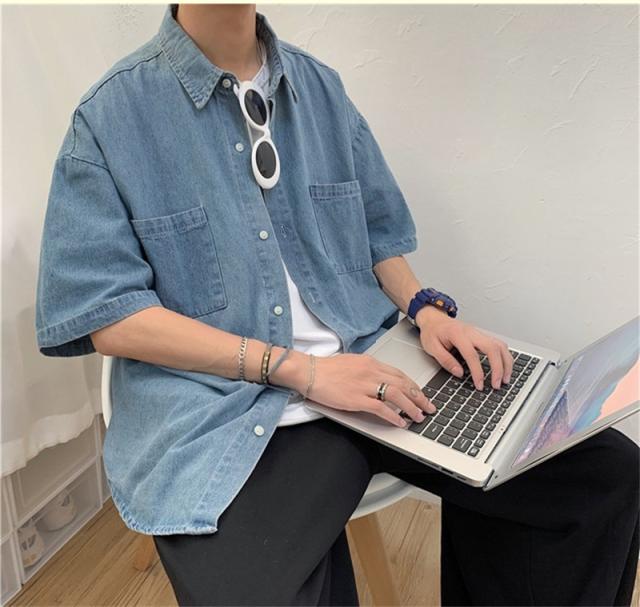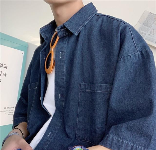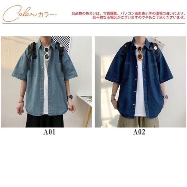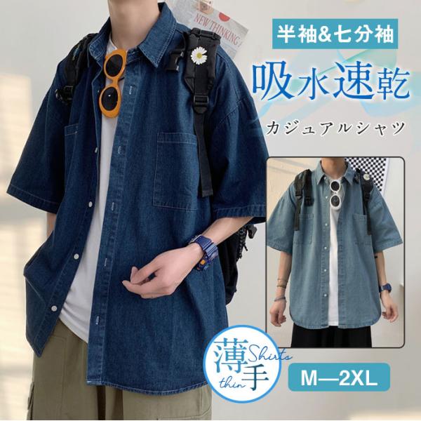 半袖シャツ カジュアルシャツ メンズ 七分袖 シャツ デニムシャツ 新生活 ビジネス 紳士服 通勤通学 アメカジ タイト ぴったり 切り替え 送料無料
