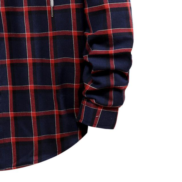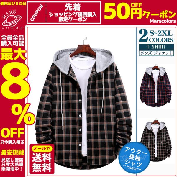 シャツ アウター メンズ ジャケット ワークシャツ 長袖 紳士着 ファッション コート カジュアル 開襟シャツ シンプル フード付き チェック柄 通勤