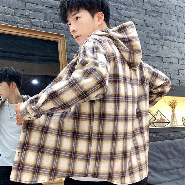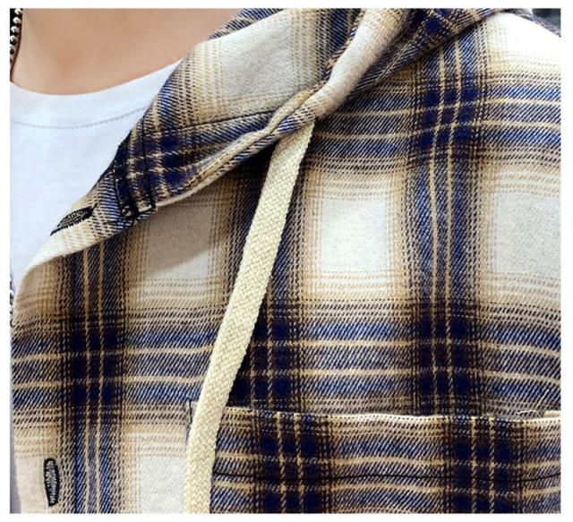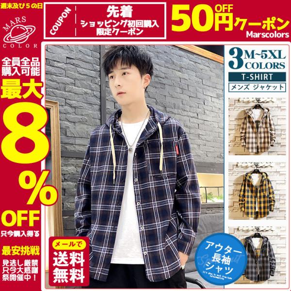 シャツ アウター メンズ ジャケット ワークシャツ 長袖 紳士着 ファッション カジュアル 開襟シャツ ソフト シンプル フード付き チェック柄 通勤