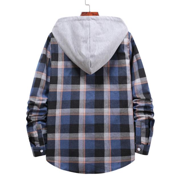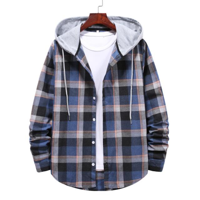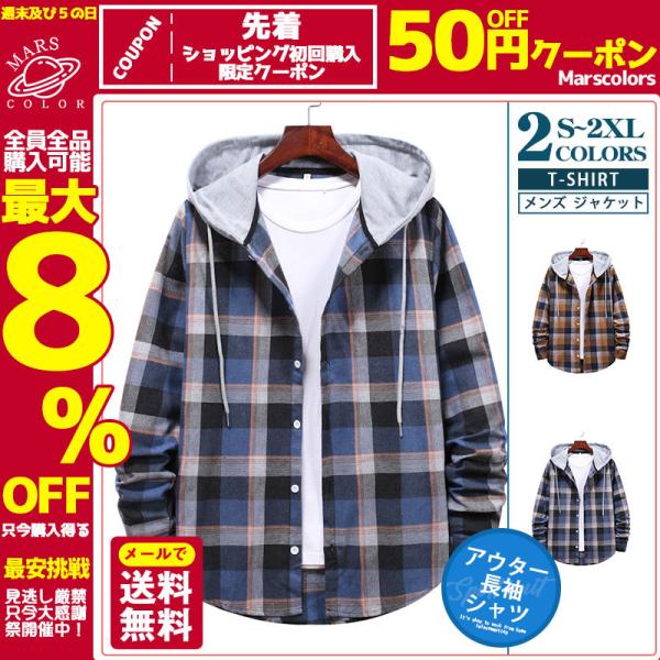シャツ アウター メンズ ジャケット ワークシャツ 長袖 紳士着 ファッション カジュアル 開襟シャツ ソフト シンプル フード付き チェック柄 通勤