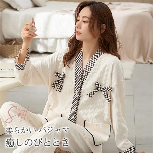 高品質 パジャマ レディース ナイトウエア 長袖 部屋着 前開き ルームウェア 上下セット 寝巻き 女 春秋冬 通気 着やすい 送料無料
