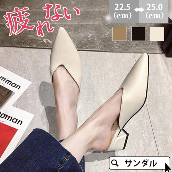 初売り ミュール サンダル レディース クリアサンダル 太めヒール スリッポン くない パンプス 試着室用 シューズ ポインテッドトゥ