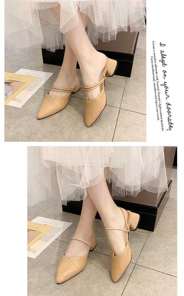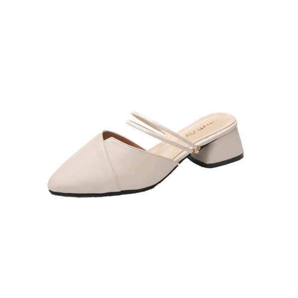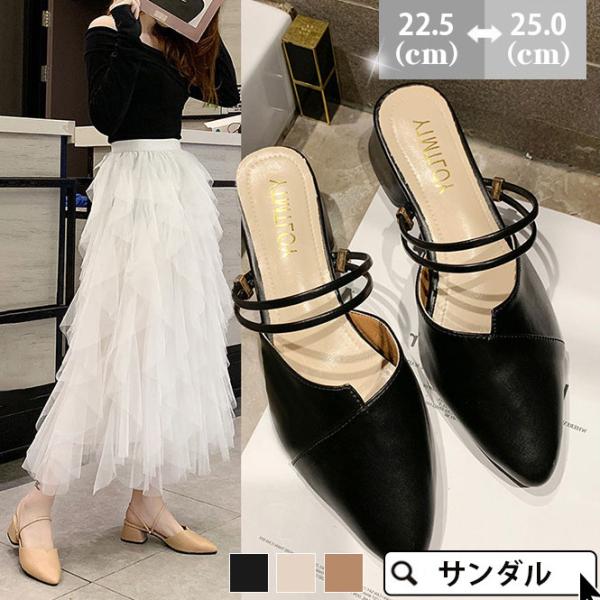 初売り ミュール サンダル レディース クリアサンダル 太めヒール スリッポン 通勤 パンプス パールチェーン シューズ ポインテッドトゥ