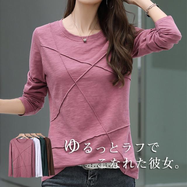 カットソー レディース トップス Tシャツ 韓国 ロンティー 春 ロンT 長袖 tシャツ ロング シンプル 通勤 通学 送料無料
