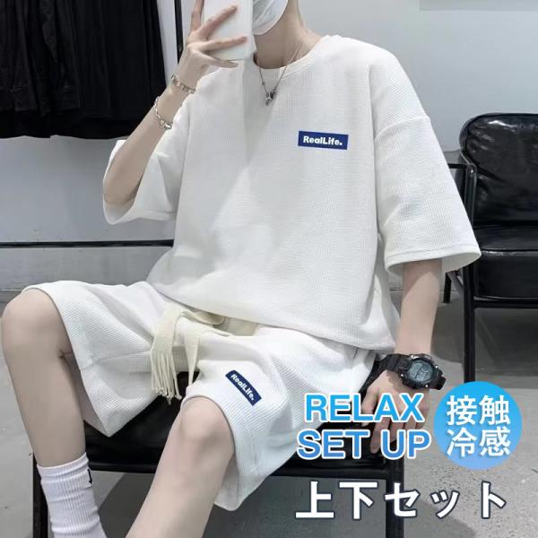 セット メンズ 夏 半袖 ジャージ 上下セット ショットパンツ サマー 薄手 部屋着 接触冷感 ひんやり ゆったり トップス Tシャツ 送料無料