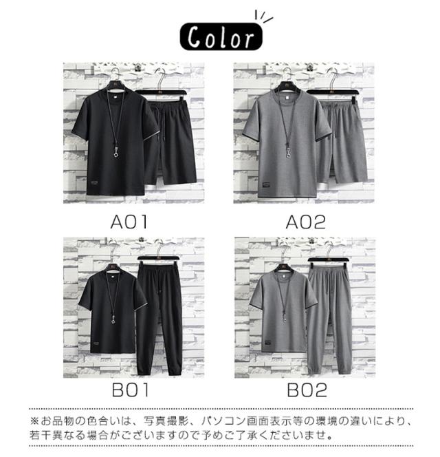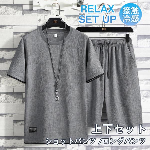 セット メンズ 夏 半袖 ジャージ 上下セット ショットパンツ ロングパンツパンツ 部屋着 接触冷感 ひんやり トップス Tシャツ 送料無料