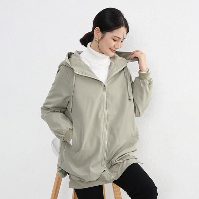 トレンチコート レディース フード付きバーカー ロング丈ジャケット スプリングコート 春コート 一部即納 ライトアウター 秋服 韓国風 30代 40代 50代
