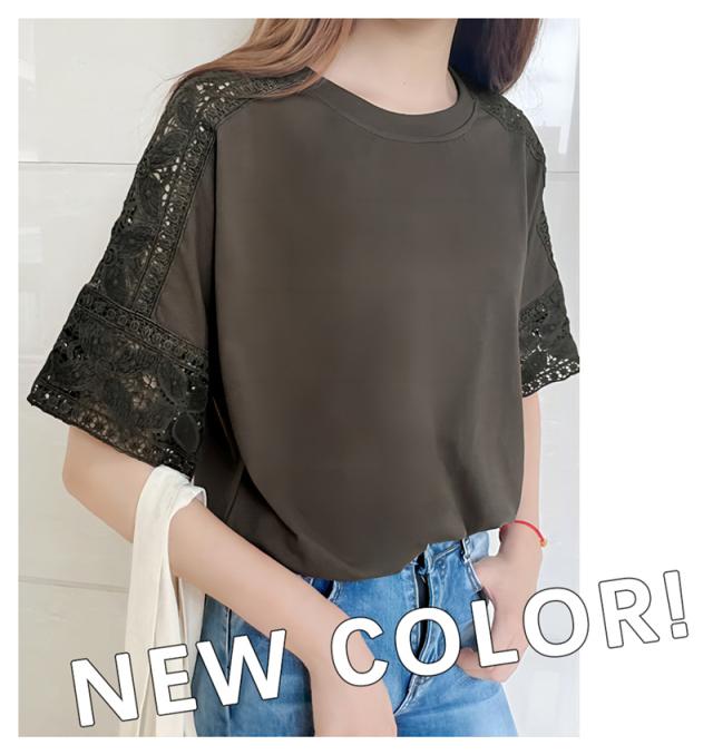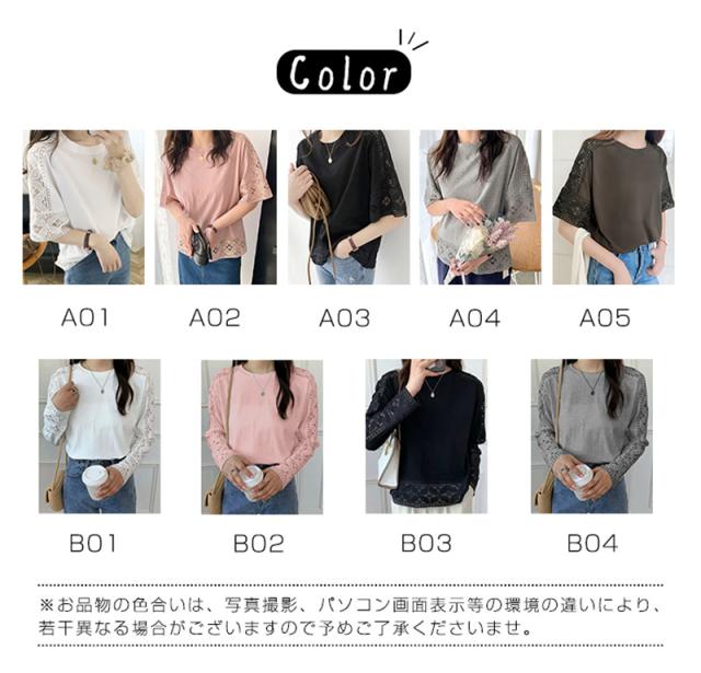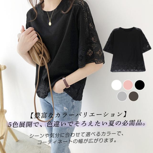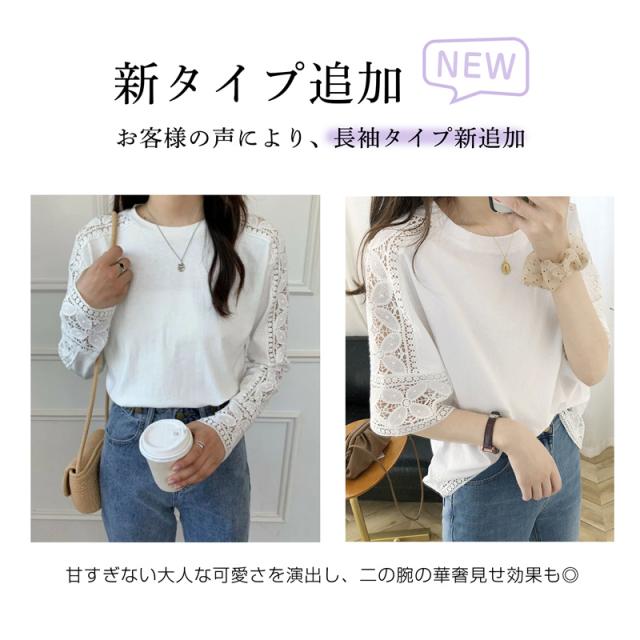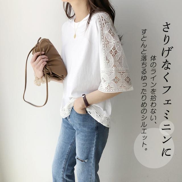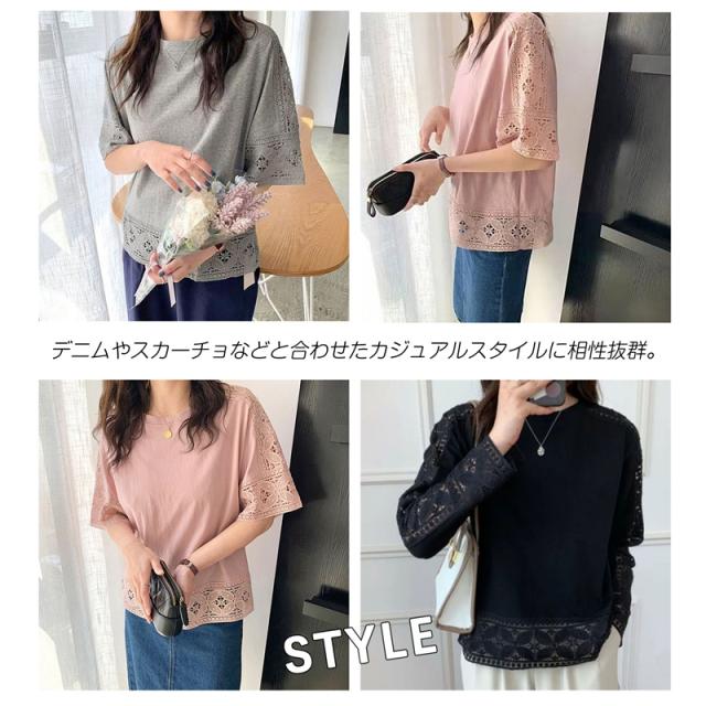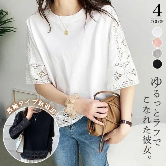 tシャツ Tシャツ レディース 半袖 長袖 カットソー 半袖Tシャツ 長袖Tシャツ ブラウス シンプル レース 刺繍 トップス 着痩せ オフィス 通勤 きれい ゆったり