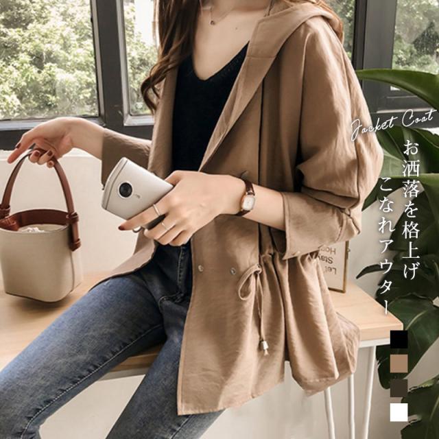 ライトコート 秋服 レディース 秋 ミドル丈 防寒 フード付き スプリングコート トレンチコート モッズ ジャケット ブルゾン 羽織り アウター 送料無料