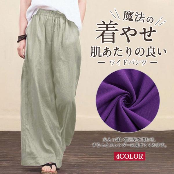 ワイドパンツ レディース ボトムス ガウチョパンツ フェミニン ゆったり ズボン 涼しい ストレート 柔らかい きれいめ 綿麻風 送料無料