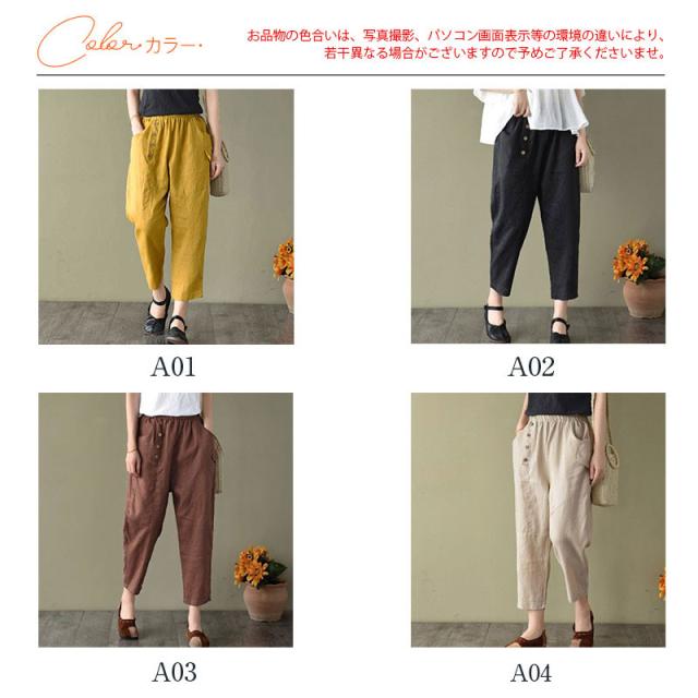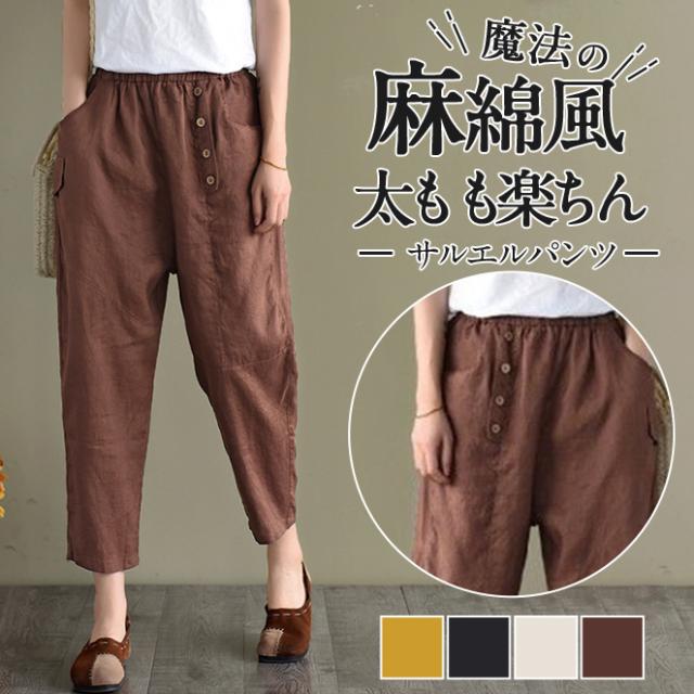 サルエルパンツ パンツ ボトムス お出かけ 麻綿風 チノパン 春夏 ウエストゴム カジュアル ぽっちゃり ゆったり 体型カバー フェミニン 送料無料